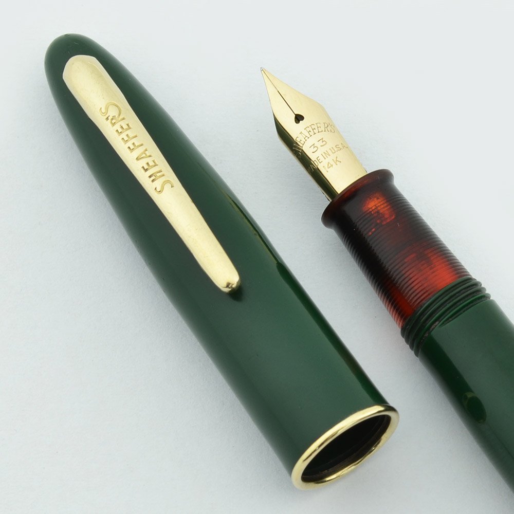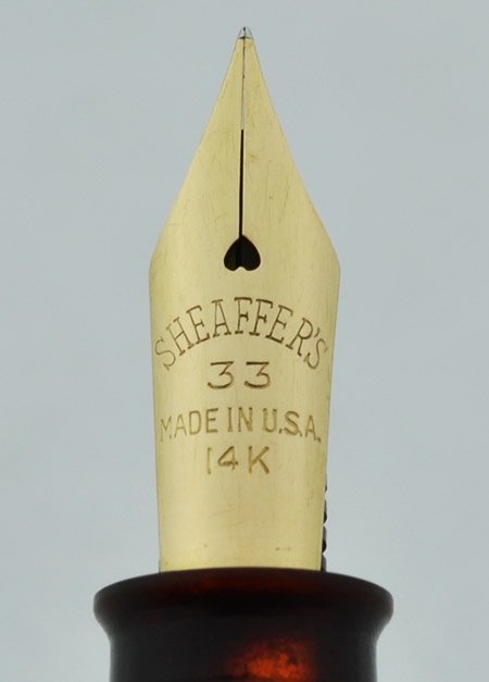 Nib EXTRA FINE 14k nib is marked 33. It's in excellent condition, fairly smooth and firm with appropriate tipping material.