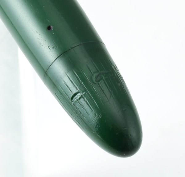 Condition Very nice condition. No cracks, chips, dings, dents, brassing, or personalization. There's some light scratching on the cap and barrel, and bite marks on the blind cap. There's just a little plating wear on the clip showing hints of the silver metal underneath. The imprint is still readable, and the pen is fuly restored, working well. A great pen for a person just starting with fountain pens who likes a really fine point.
