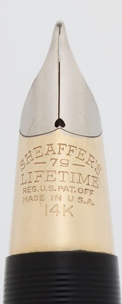 Nib Sheaffer's 14k 79 Lifetime nib. We judge it to be a medium.
