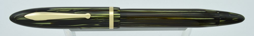 Color Green and clear striated with gold-fill trim. See-through barrel to visual ink level.