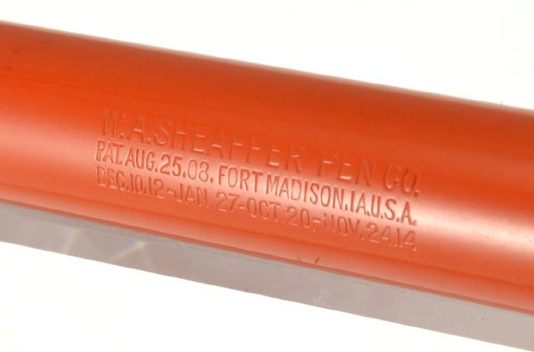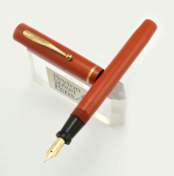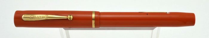 Color | Orange radite (the same color as red hard rubber, but it's plastic). Gold plated trim. Short hunped clip. |