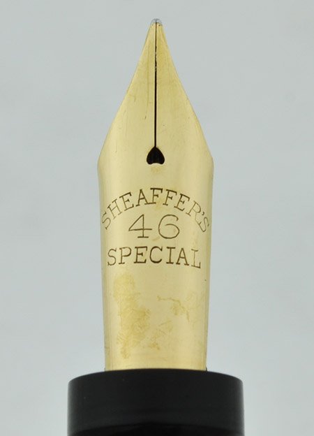 Nib MEDIUM gold Sheaffer's #46 Special nib. It's smooth and firm, the tipping is slightly uneven, but certainly covers all of the writing tip. No flex.