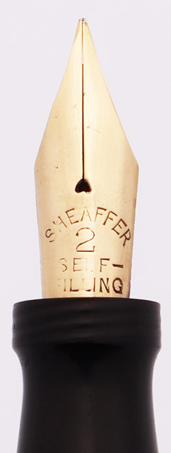 Nib FLEXIBLE FINE gold Sheaffer's #2 Self-Filling. Excellent flex, it flexes easily from extra fine to medium, very soft but not a wet noodle. See writing sample below.