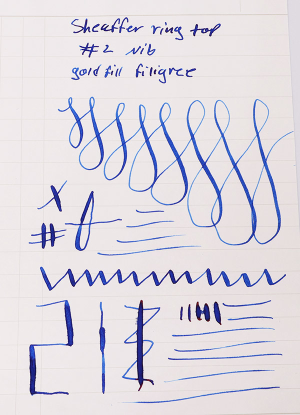 Nib Fine #2 nib, nice softness and flexibility. See our writing sample in the photos.