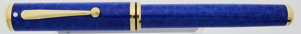 Color Blue lacquer, marbled with veins of lighter blue, a.k.a. "Blue Ronce". Gold-plated trim.