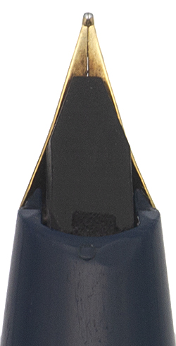 Condition Excellent condition with no cracks, chips, dents, or dings. This is a lovely, dark blue pen that is shiny and elegant with its gold lined cap. The barrel has light scratching with some moderate microscratching. The section has two deep scratches, that's the most serious flaw on this pen. The cap has moderate microscratching with light plating wear near the top. There are two dots of pitting on the side of the cap opposite the clip. The clip has light scratching, mainly long, thin scratch lines. The white dot looks great. The imprints are nice and clear.