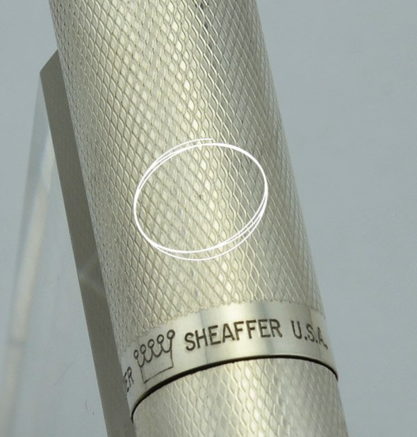 Color The body is solid sterling silver in a lovely fine barley pattern that is very pleasing to the touch. The trim is gold plated. (Pen marked "Sterling Silver" with the Sheaffer crown.)