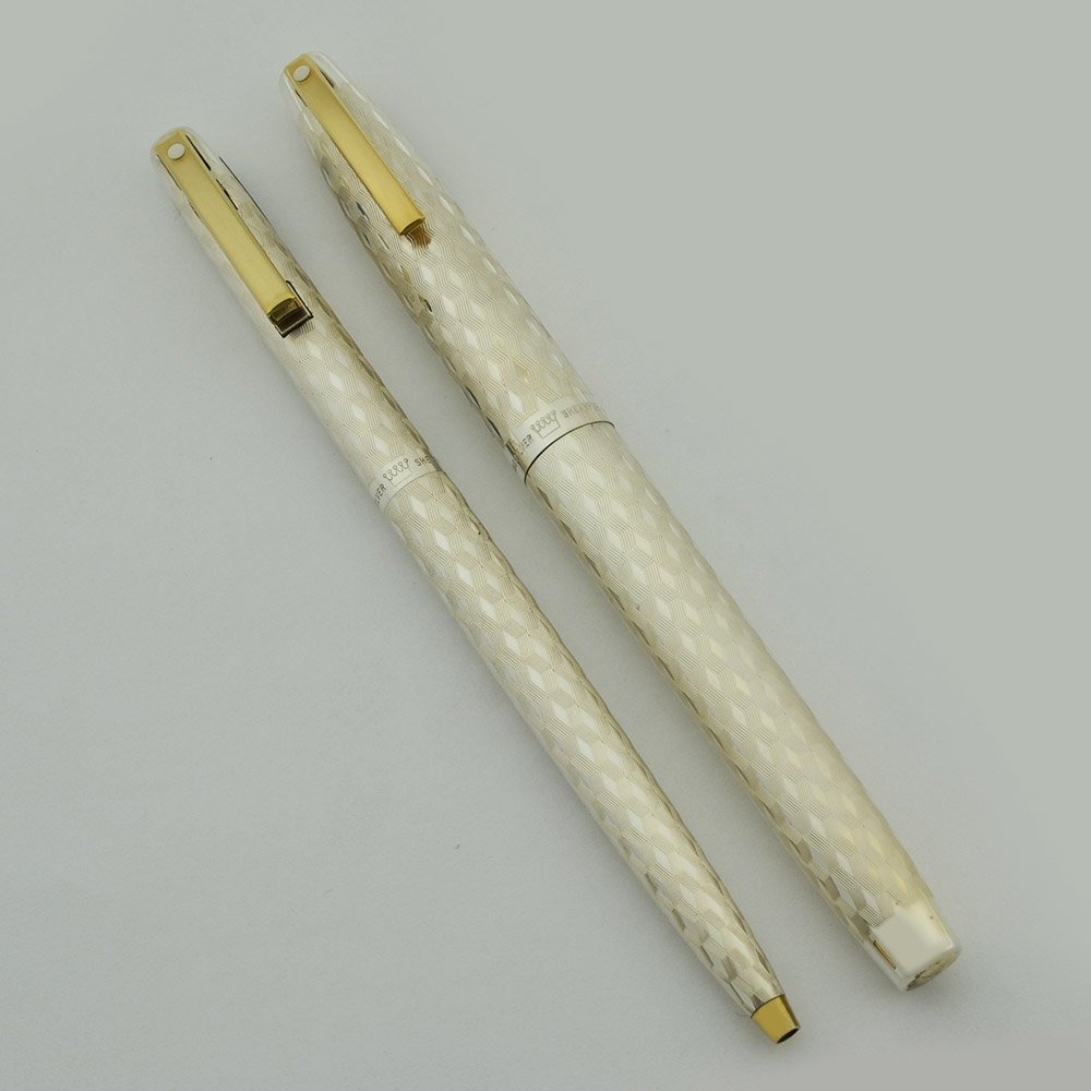 | Color | The bodies are solid sterling silver in a lovely marquetry-like pattern that is very pleasing to the touch. The trim is gold plated. (The bodies are marked "Sterling Silver" with the Sheaffer crown.) |