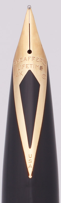 Filling System Takes Sheaffer-style cartridges and converters. One of the very hard-to-find button converters is installed (no other Sheaffer converters will fit).