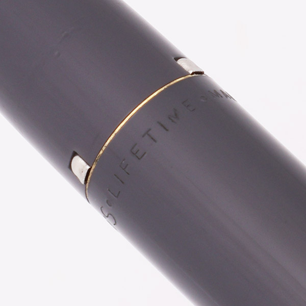 Color Deep gray plastic cap and barrel with gold plated trim and a 3/8" wide cap band.