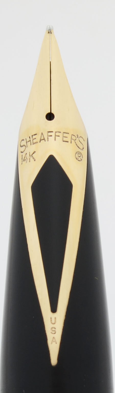Nib MEDIUM Sheaffer's 14k gold long diamond style inlaid nib is smooth with appropriate tipping material. It's a clean, nice looking nib.