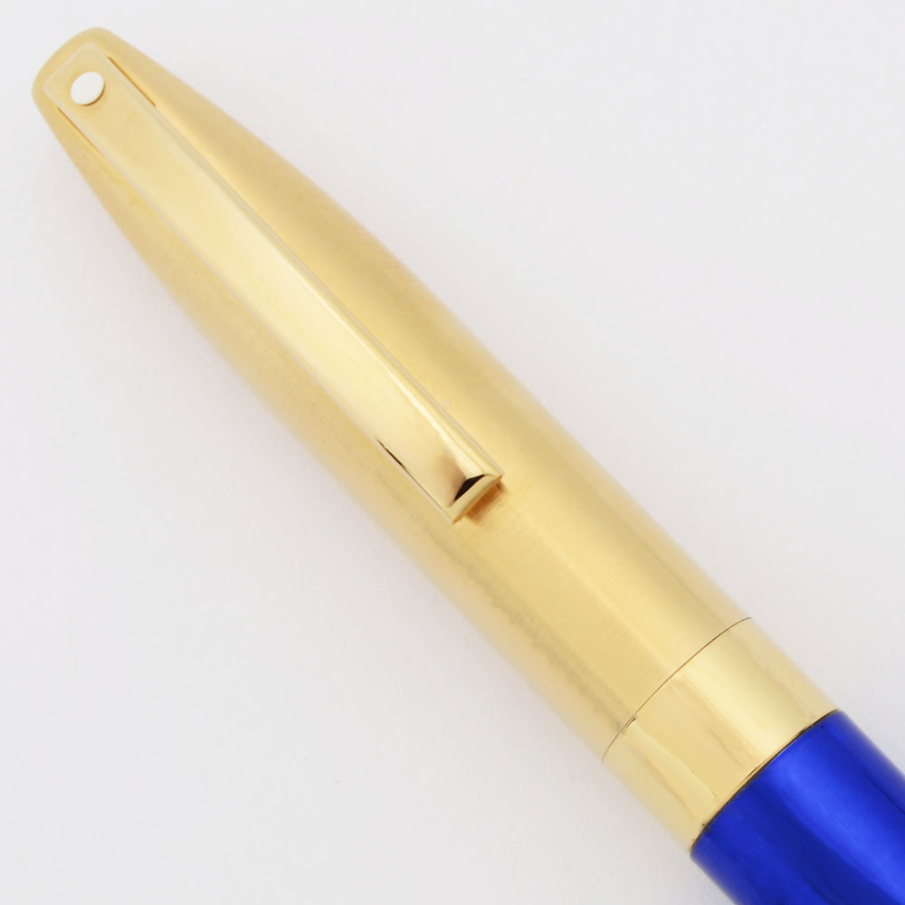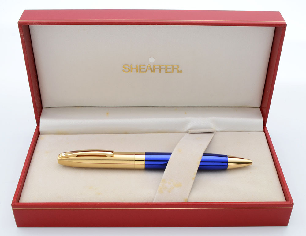 Color Brushed 23kt electroplated cap and trim. Cobalt blue laque body with a metallic finish.