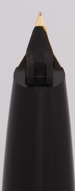 Condition Near mint condition, in box, with paperwork and no cracks, chips, dents, or dings. This is a large, shiny pen that is elegant in appearance. The barrel looks fantastic. The section has a few long thin marks caused by capping. The brushed gold cap is perfect. The wide cap band has light microscratching. The clip is lovely. The white dot is perfect. The imprint (on the upper edges of the clip) is clear.