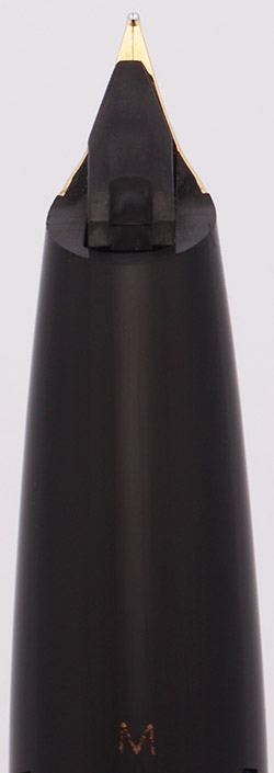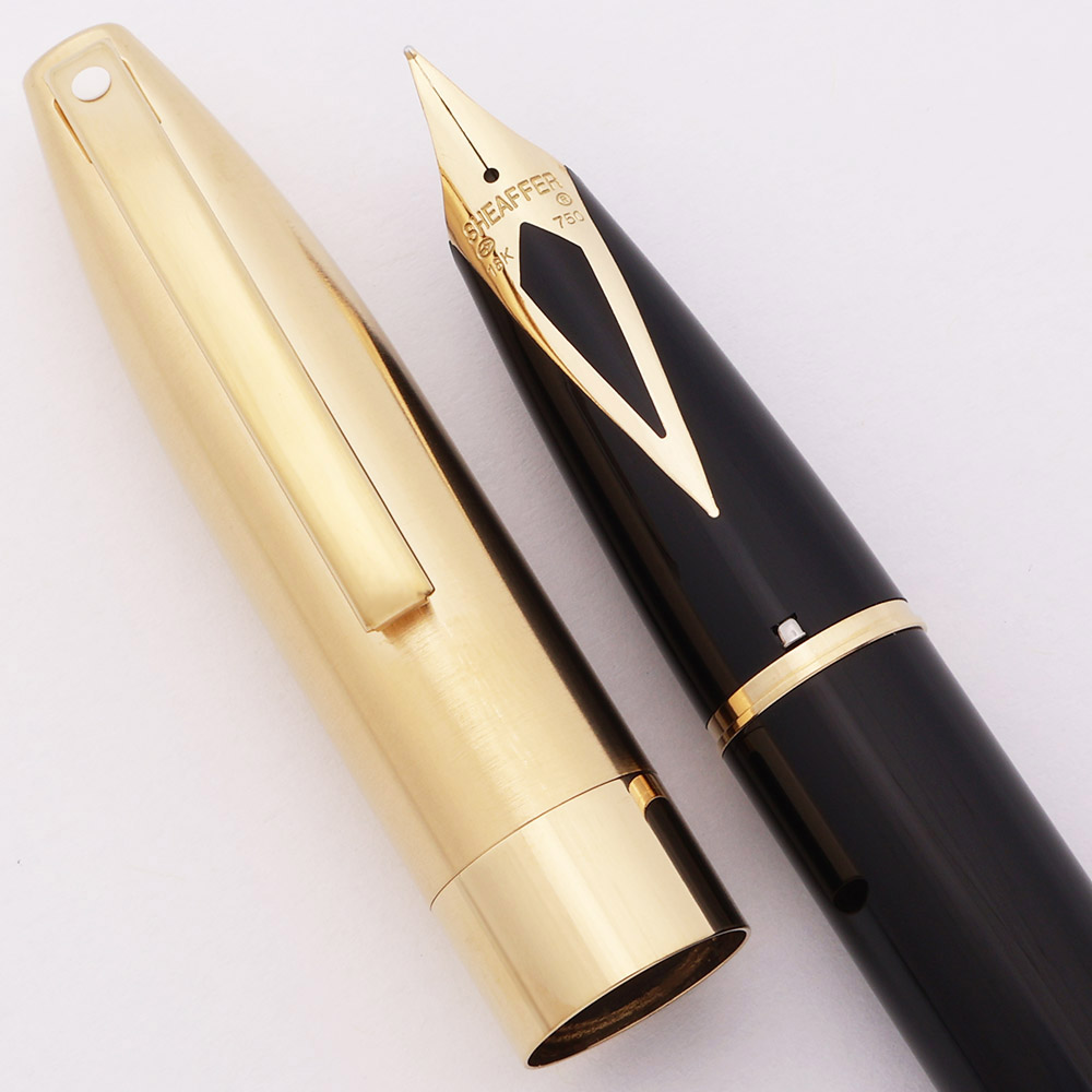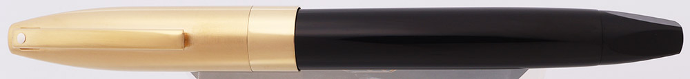 Color Black with Gold plated trim. White dot. Wide 3/8" gold-plated cap band.