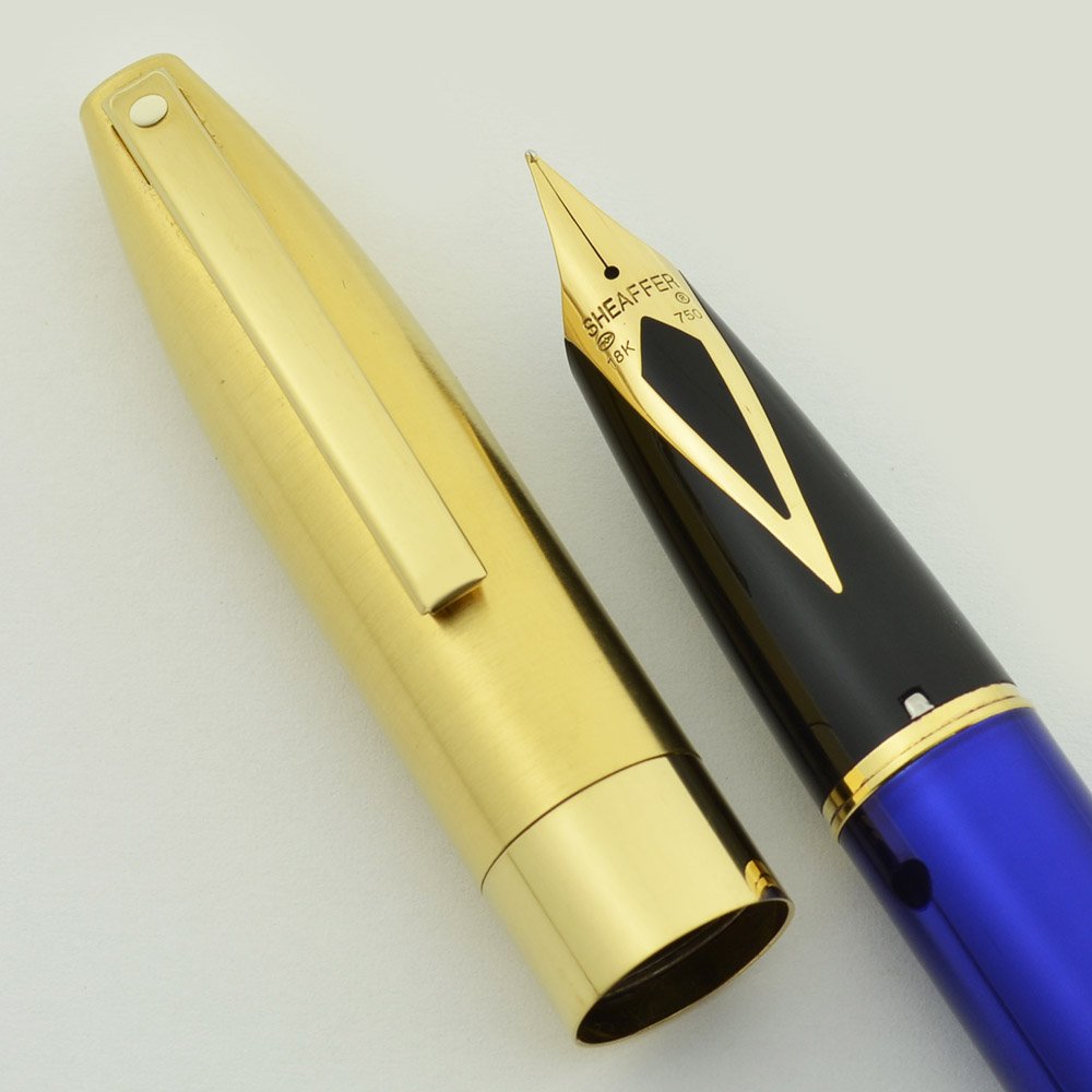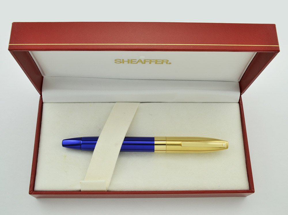 Color Brushed 23kt electroplated cap and trim. Blue laque body with a metallic finish.