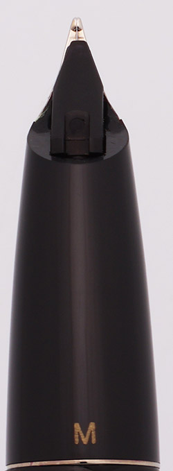 Condition Excellent + with no cracks, chips, dents, or dings. This is a velvety black, large, shiny, impressive looking pen. The cap and barrel have a few light scratches. The cap band has a little bit of microscratching and a few mini-dots of plating wear. The clip has a few little microscratches. The white dot is perfect. The imprints are clear.