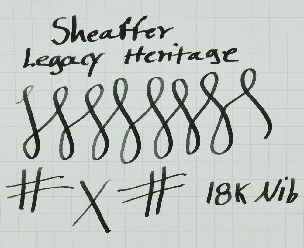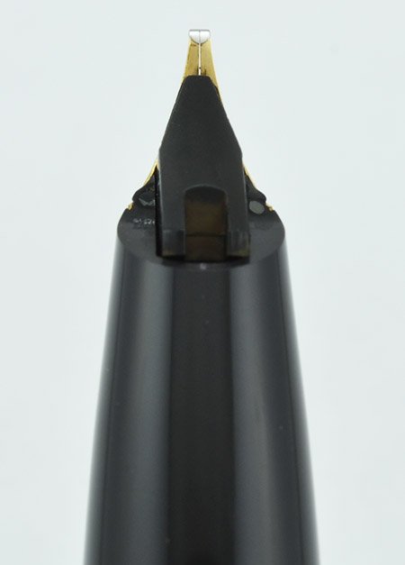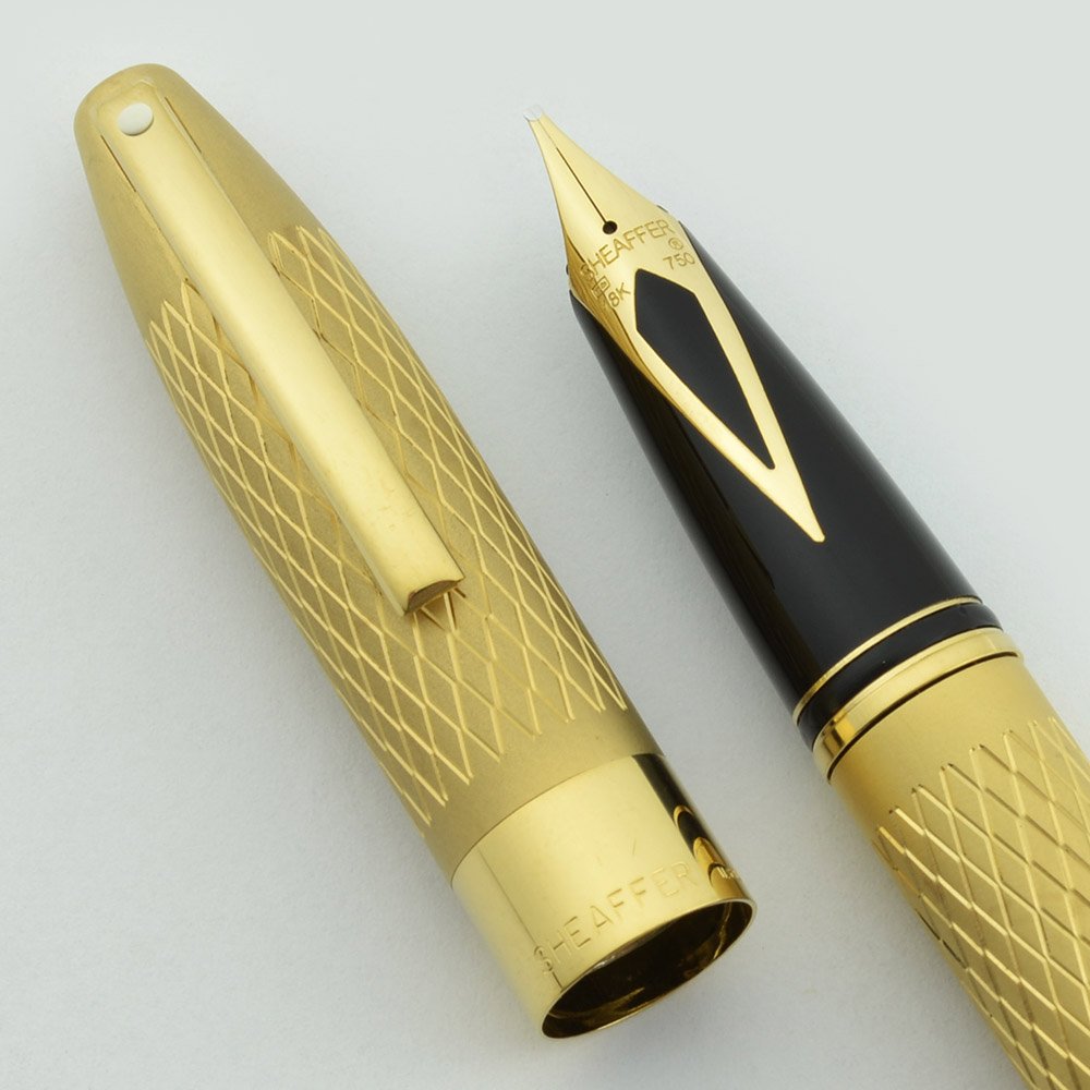 Nib Sheaffer 18kt 750 inlaid nib. Marked "S" for stub, it is a broad italic with a soft feel verging on flex (see writing sample). This is a very desirable nib!