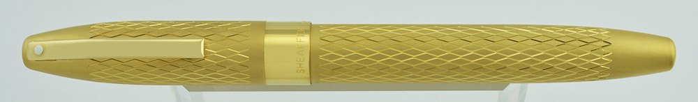 Color Sandblasted King's Gold Pattern. It is a matte gold with a shiny cut diamond pattern. It has a wide cap band. The entirety of the pen is 23k electroplated gold.