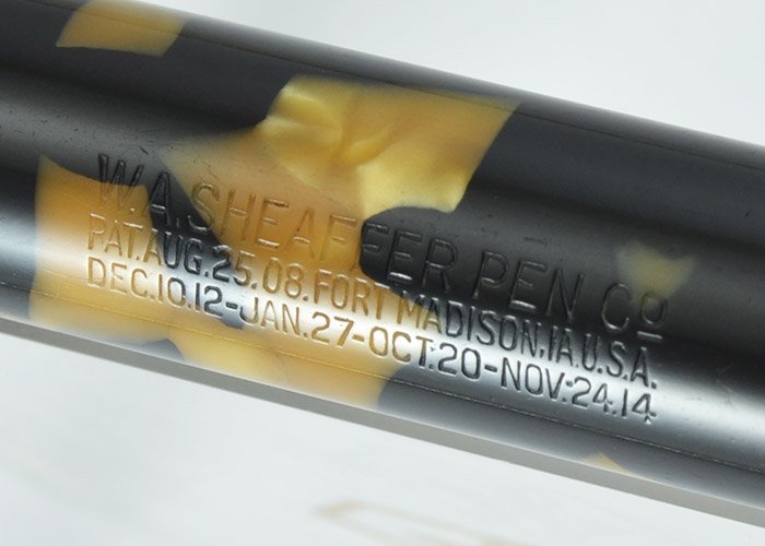 Condition Excellent condition, no chips, dings, dents or personalization. The main flaw is the barrel discoloration, but the pen is structurally very sound. There's some brassing on the cap band and on the ball of the clip. There's light scratching on the celluloid. The imprint is crisp and readable. The pen has been fully restored and it's working very well.