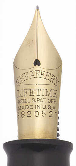 Nib Fine Sheaffer's Lifetime gold nib with a serial number, 6820527. Excellent flex, with line variation from fine to broad. Please see writing sample.