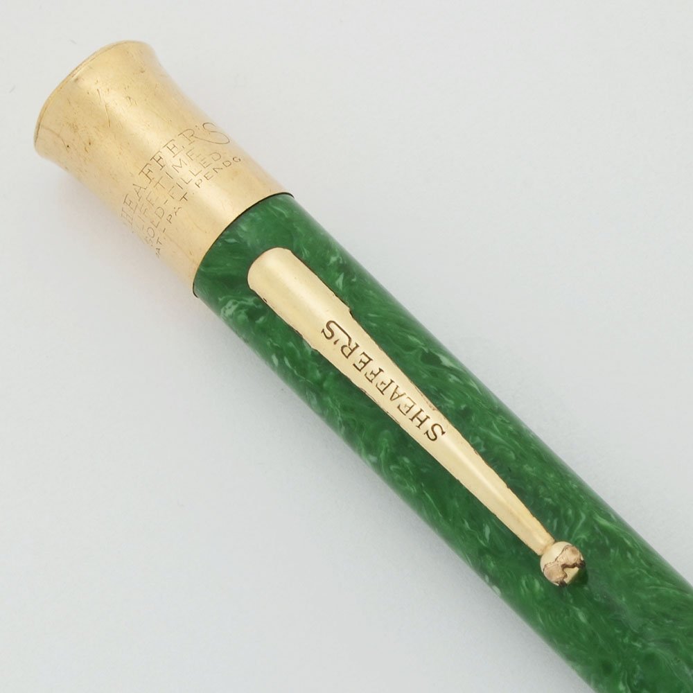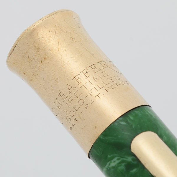 Condition Excellent condition with no cracks, chips, dents, or dings. This is a large-sized pencil that is very shiny and in a great, consistent color. The barrel has light scratching with two or three noticeable scratches. The cone looks great. The clip has some plating wear on the ball. The gold top piece has some scratching and a little dent around the top edge. The imprints are clear.