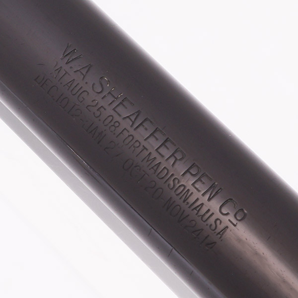 Condition Very nice condition. There is moderate handwear and scratching on the cap and barrel. There is plating wear on the sides of the clip, and blotches of brassing on the ball end. The cap band has brassing along both edges. The cap lip is smooth and even. The section has scratching and some tool marks. There are bite marks at the end of the barrel. The lever has scratching and some plating wear along the edges. The imprint is clear.