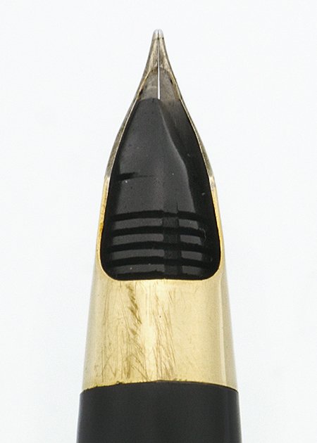 Nib Medium two-tone 14k Lifetime Triumph nib. It's firm and smooth. There's some polishing marks on the nib but the silver colored masking is intact.