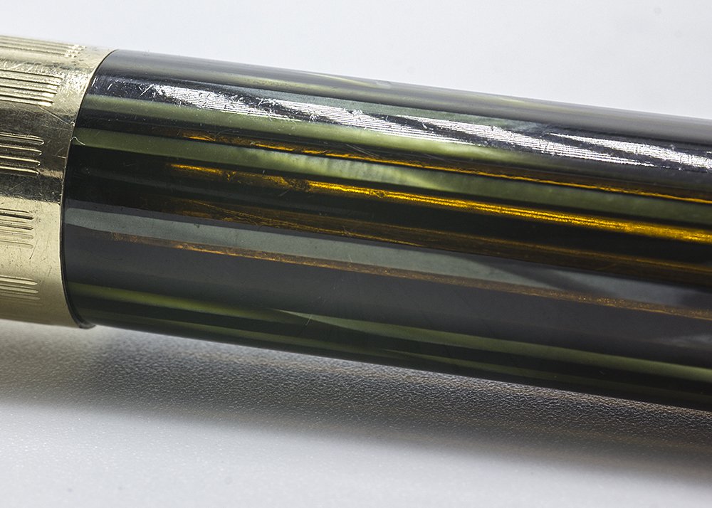 Condition Excellent condition with microscratches on the cap and a few other scratches throughout. The worst set of scratches are to the right of the clip. The cap band has two dents next to each other just to the left of the clip. The imprint is perfect and includes a 1250 that doesn't really show in the photograph.