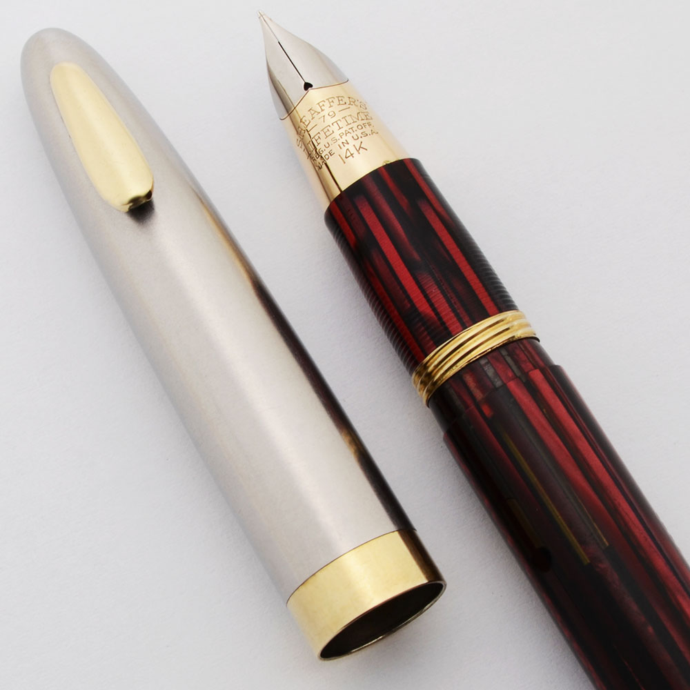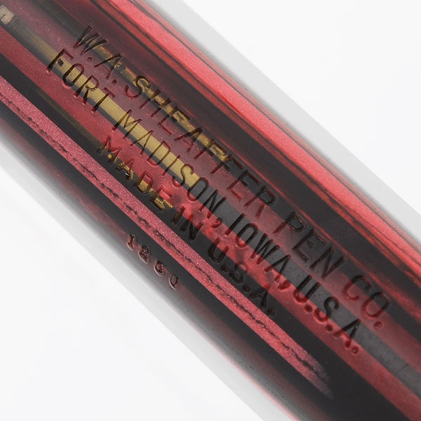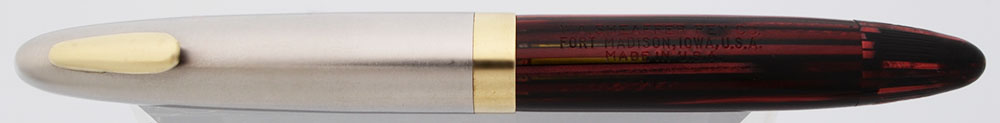 Manufacturer and Year Sheaffer, made in USA – circa 1945-49 (in '49 they figured out how to put the white dot on metal caps, but on this one the dot is on the end of the cap).