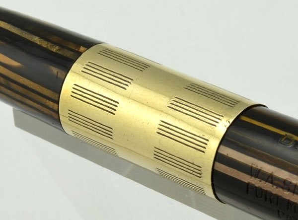 Excellent both cosmetically and functionally. Signs of light usage. The gold filled trim is in excellent condition. Only a few light marks on the body. The filling system takes in and expels liquid strongly. Personalized on the barrel D.S. LYMAM |