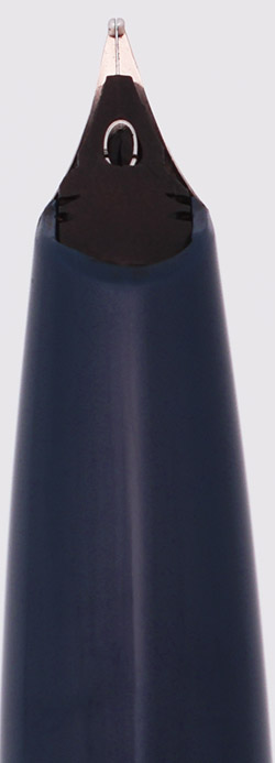 Nib Medium PdAg (Palladium Silver) nib. There are some scratches on the top surface of the nib near the breather hole, which do not affect the pen's writing performance.