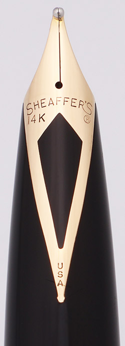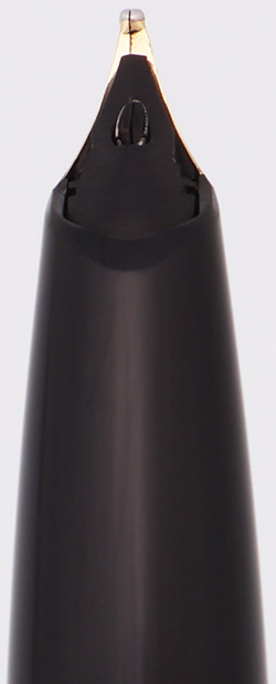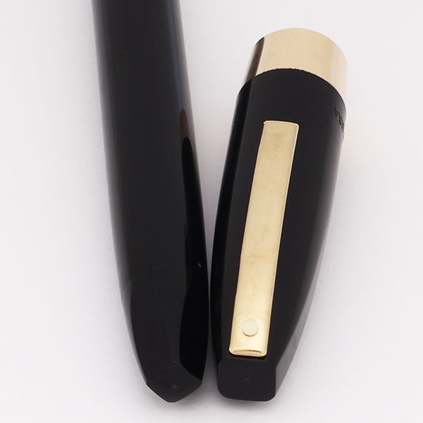 Condition Excellent condition with no cracks, chips, dents, or dings. This is a large, substantial pen with executive styling -- it is handsome and elegant and shiny. The cap and barrel have light to moderate scratching. The section has some long, thin scratches from capping. The end of the barrel and blind cap have moderate scratching from posting the cap. The top of the cap has some scraped areas. The clip has microscratching, but no plating wear or brassing. The 3/8" wide cap band has hints of plating wear along the upper and lower edges. The white dot looks good.