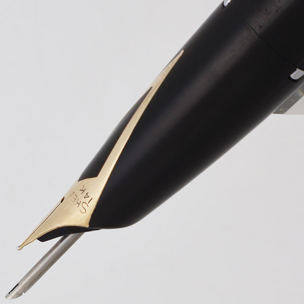 Filling System The PFM III uses a snorkel filling system. The snorkel works in combination with the Touchdown filling system. Unscrew the knob to extend the snorkel, pull out the piston, immerse the tip of the snorkel in ink, and push the piston down. Wait 10 seconds to allow the bladder to expand and pull the ink in. Then screw the knob to retract the snorkel. No need to wipe ink off of anything. The filling system has been restored here at PSP and it works well with excellent suction. We guarantee the filling systems for a year from the date of purchase.