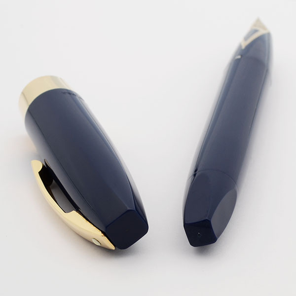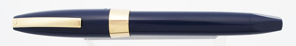 Condition Excellent + condition with no cracks, chips, dents, or dings. This is a large, substantial pen with executive styling -- it is handsome and elegant and shiny. The cap and barrel have only microscratching and the overall appearance is very shiny. The wide 3/8" cap band and the clip have microscratching or polishing marks, but no brassing. The white dot is slightly yellowed, but otherwise perfect. The imprints are clear.