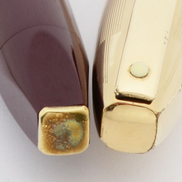 Color Burgundy barrel with a gold filled cap and a small gold filled end plate on the blind cap.