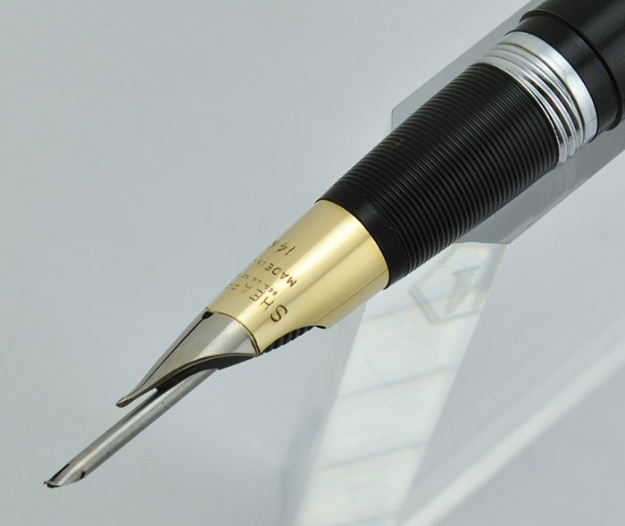 Nib EXTRA FINE two-tone 14k Triumph style nib is. The nib has a slight upturn to it, and is fairly firm with nice tipping material.