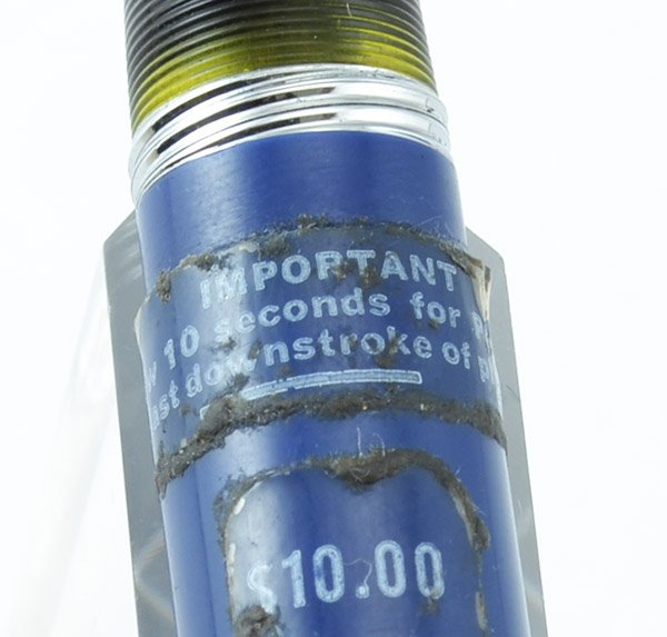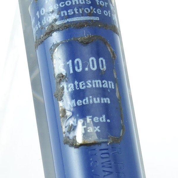 Type Fountain pen with the Vac-Fil filling system with matching pencil. Please note that one of the stickers seems to be wrong for this type of filling system, as it instructs the user to wait 10 seconds after the downstroke, and that information is relevant to the touchdown filling process, not the Vac-fil process. This was a period when both types of filling systems were offered, so we're guessing someone got sticker-crazy in the factory and slapped on the wrong sticker.