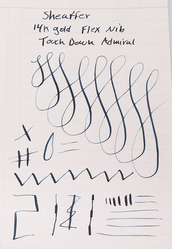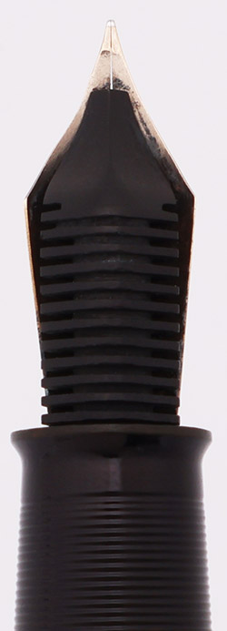 Nib Uncommon flexible Extra-Fine Sheaffer's 14k gold nib with serial number B56313. We believe it was originally two-toned, but the masking has been mostly polished away. See our writing sample below (note: the pen is misidentified in the writing sample - it's not an Admiral model, and the sample was made with this pen).