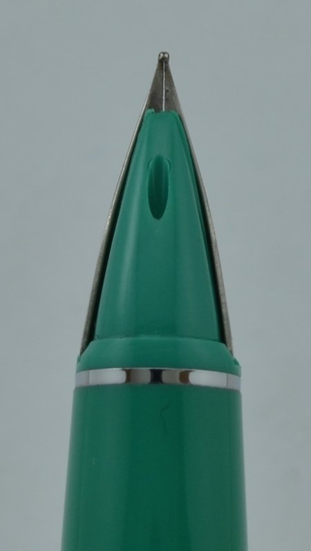 Nib FINE steel nib. The barrel is still marked "Fine" in it's original gold chalk paint which will wipe away fairly easily.