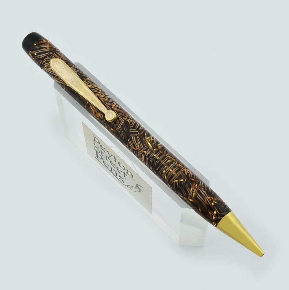 Condition Excellent condition with some lesser scratching in the finish, which doesn't hardly show due to the complex pattern. The gold plated trim is mostly in really nice conditon, except fot the flat surface of the clip, which has some lighter wear, early brassing on it (see photos). It's really quite beautiful looking, and working well.