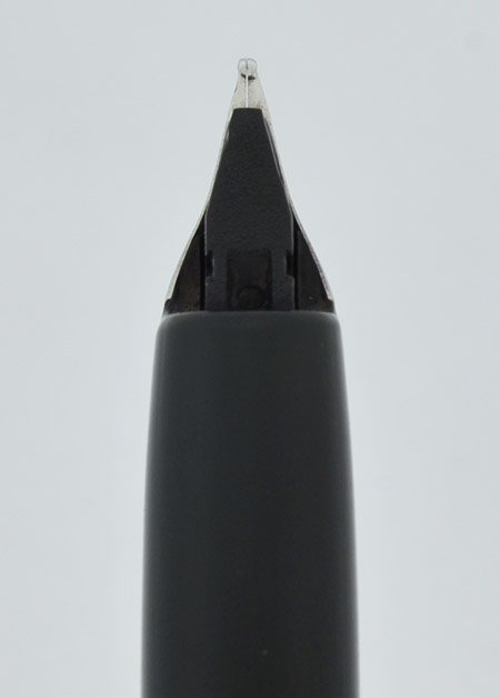 Nib MEDIUM ITALIC nib is made of steel. It appears to have been a medium nib that was ground into a cursive italic. We spent a little time smoothing it, and it writes nicely with no sharp edges.