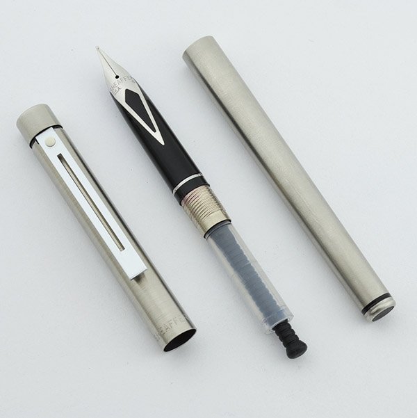 Filling System It's fitted with a mini converter, which is not the original sheaffer converter but works well (see photos). It's very difficult to find a converter that works with these pens, so don't lose it. It can also take Slim Sheaffer Cartridges, which are also very difficult to get your hands on.