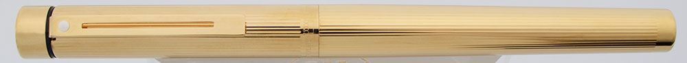 Color Gold plated body and cap, with a lined design. This pattern is the Targa No. 1005. White dot.