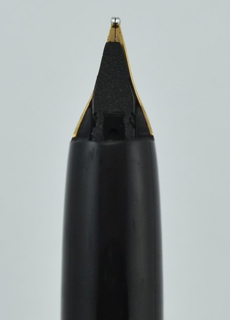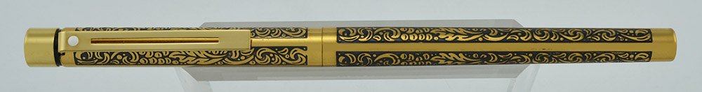Condition Excellent condition. The plating has light scratches. There's a funny area below the sticker -- the design has some small dot blemishes which seem to have been painted black when they applied the enamel. No cracks, chips, dings, dents, or personalization. The gold trim looks good. It's working very well with its Sheaffer converter. The imprint is clear and it has its original cap sticker.