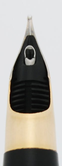 Nib MEDIUM Sheaffer's 14k triumph nib with palladium masking. The two-tone nib has a waverly upturn.