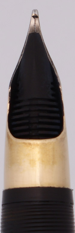 Nib FINE 14k Sheaffer Triumph nib. The masking is in good condition, with the exception of a tiny little mark on one of the tines near the tip. This does not affect the pen's writing performance. The nib writes smoothly.