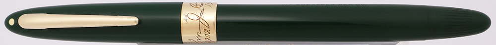 Color Evergreen cap and body with a 3/8" wide cap band and gold trim. The clip is plated and the band is solid 14k gold.