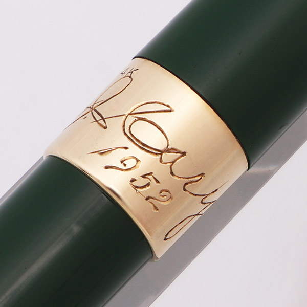 Condition Excellent condition. There is light scratching on the cap and barrel. The section threads have some light plating wear. The ridges on the section look good. The blind cap looks great, with no bite marks. The cap has microscratching and a couple of small surface marks. The clip has some plating wear along the sides. The white dot looks good. The cap band is personalized with the signature of John J. Gary (or Cary?) and the years 1902 and 1952. No denting on the band. The imprint is easily read.