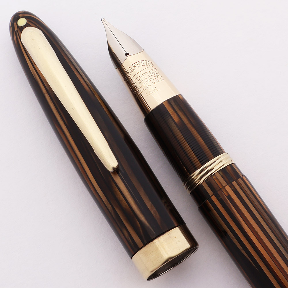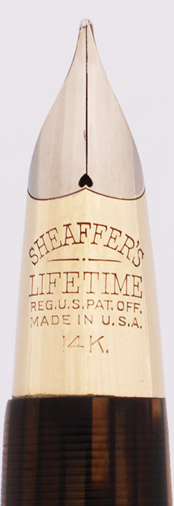 Nib FINE Sheaffer's Lifetime two-tone 14k gold Triumph nib is smooth and firm with nice tipping material.