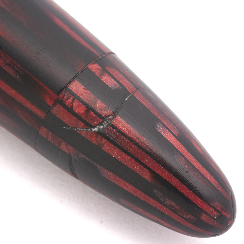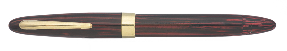 Color Carmine red striated (striped) with gold plated trim. 1/4" cap band.